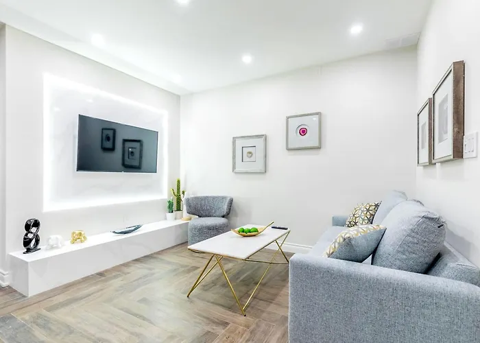 Loblaws se encuentra no muy lejos de esta casa de vacaciones y el Centro Eaton de Toronto está a unos 1 km. Esta villa también está a unos 10 minutos a pie de la Galería de Arte de Ontario. Para los entusiastas del deporte, la villa Modern Pet-Friendly Chinatown Apartment es un punto de partida ideal para descubrir la escena deportiva de Toronto, con el Coliseo Ricoh, situado a 2 km.
